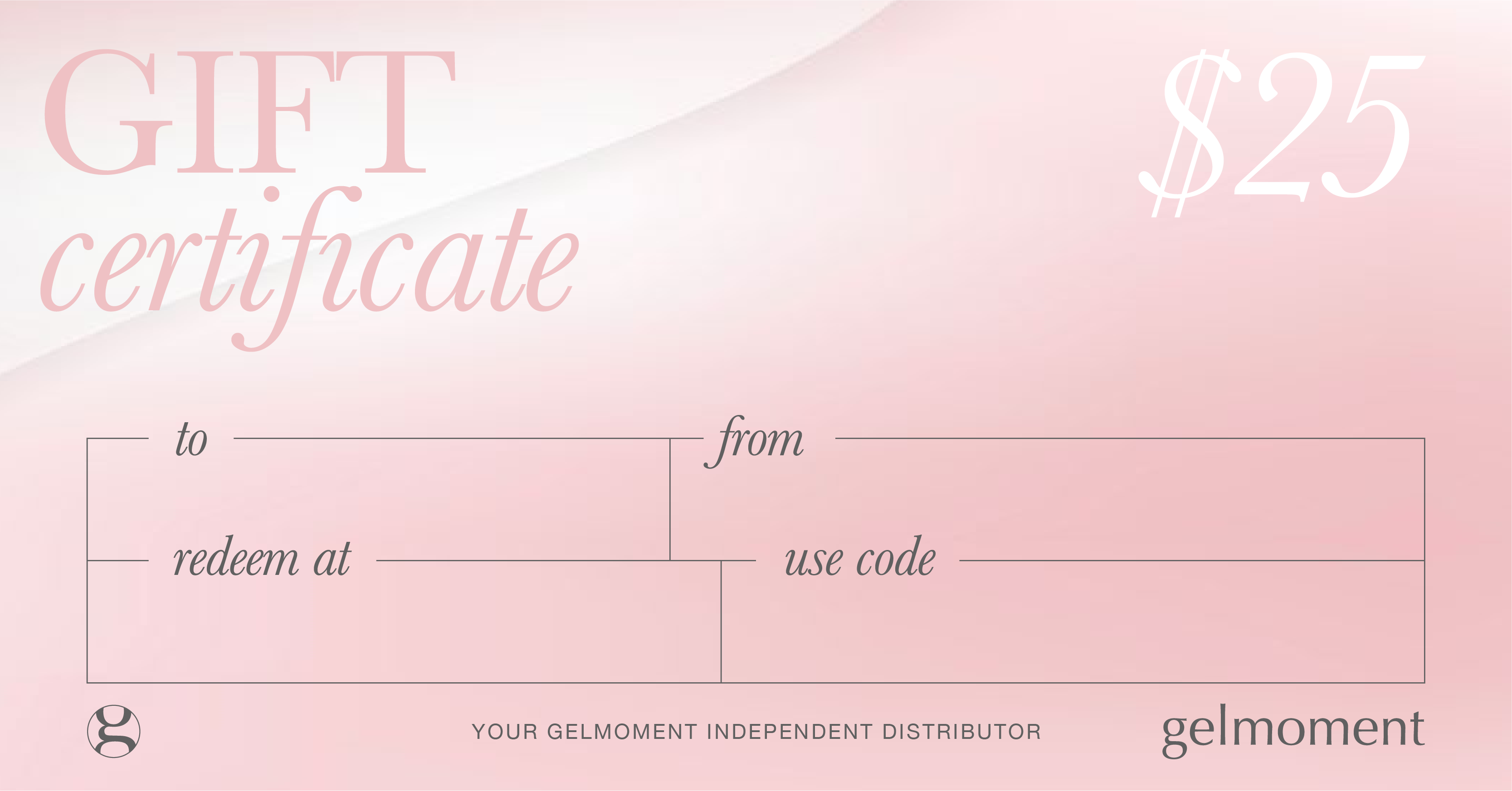 Gift Certificates cannot be purchased with credits, are not eligible for PRS, TSV, are not commissionable and are not included in Party Sales total. The redemption of the Gift Certificate code is fully commissionable, and is eligible for all requirements. Gift certificates are valid on all purchases, including the GelMoment Enrollment Package and Event Tickets.