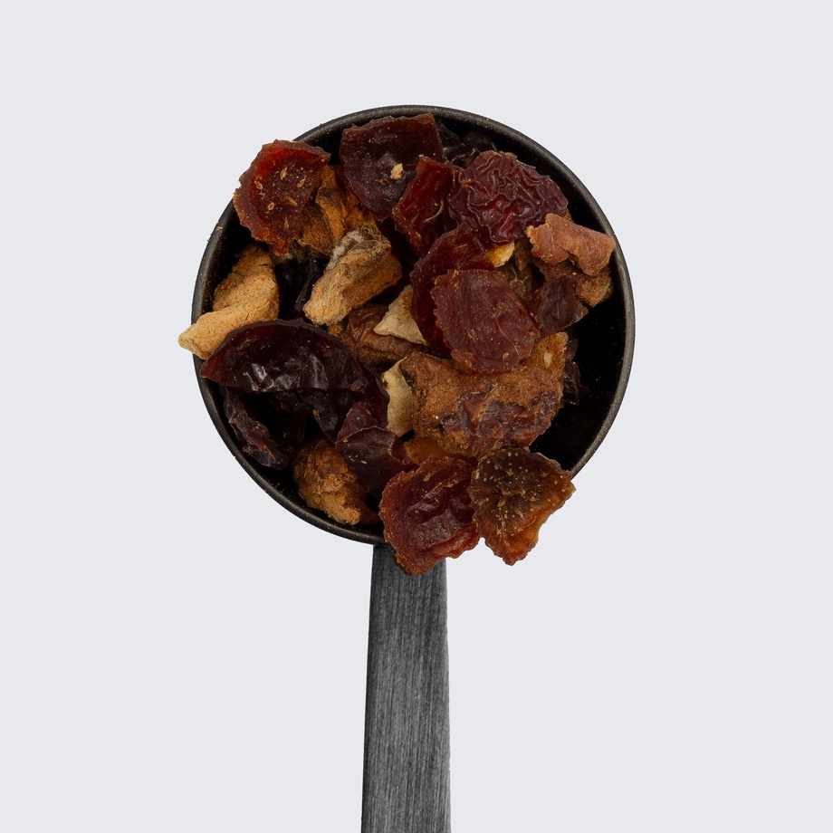 Apple, rose hips, rose bud & petals, strawberries, chaga, lemon peel, orange peel, strawberry lemonade extract, marigold.